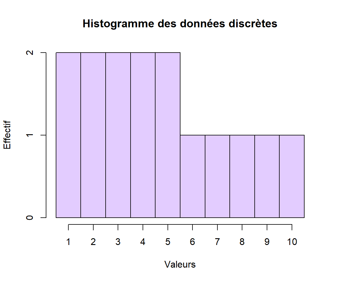 Voici l’histogramme d’un échantillon de données discrètes :